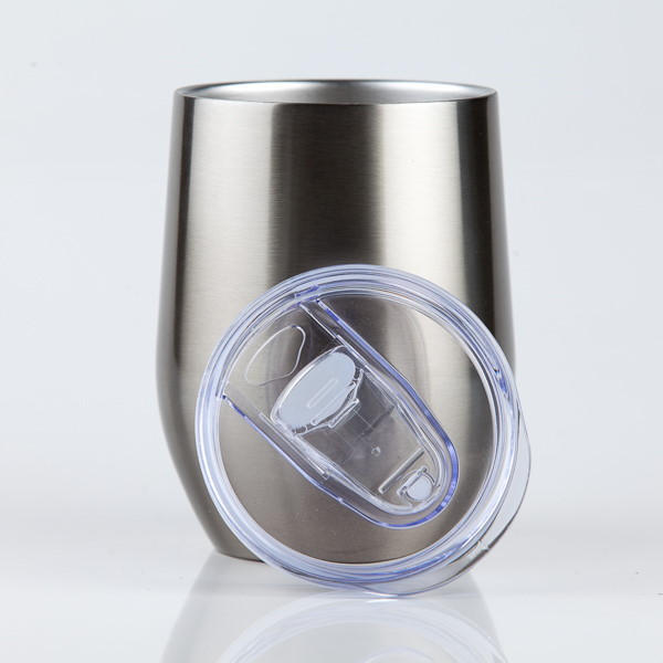 The silver 350ml double wall stainless steel wine tumbler is made from durable stainless steel featuring a plastic lid for easy sipping.With a leak-proof design, this glass is perfect for beverages on the go.